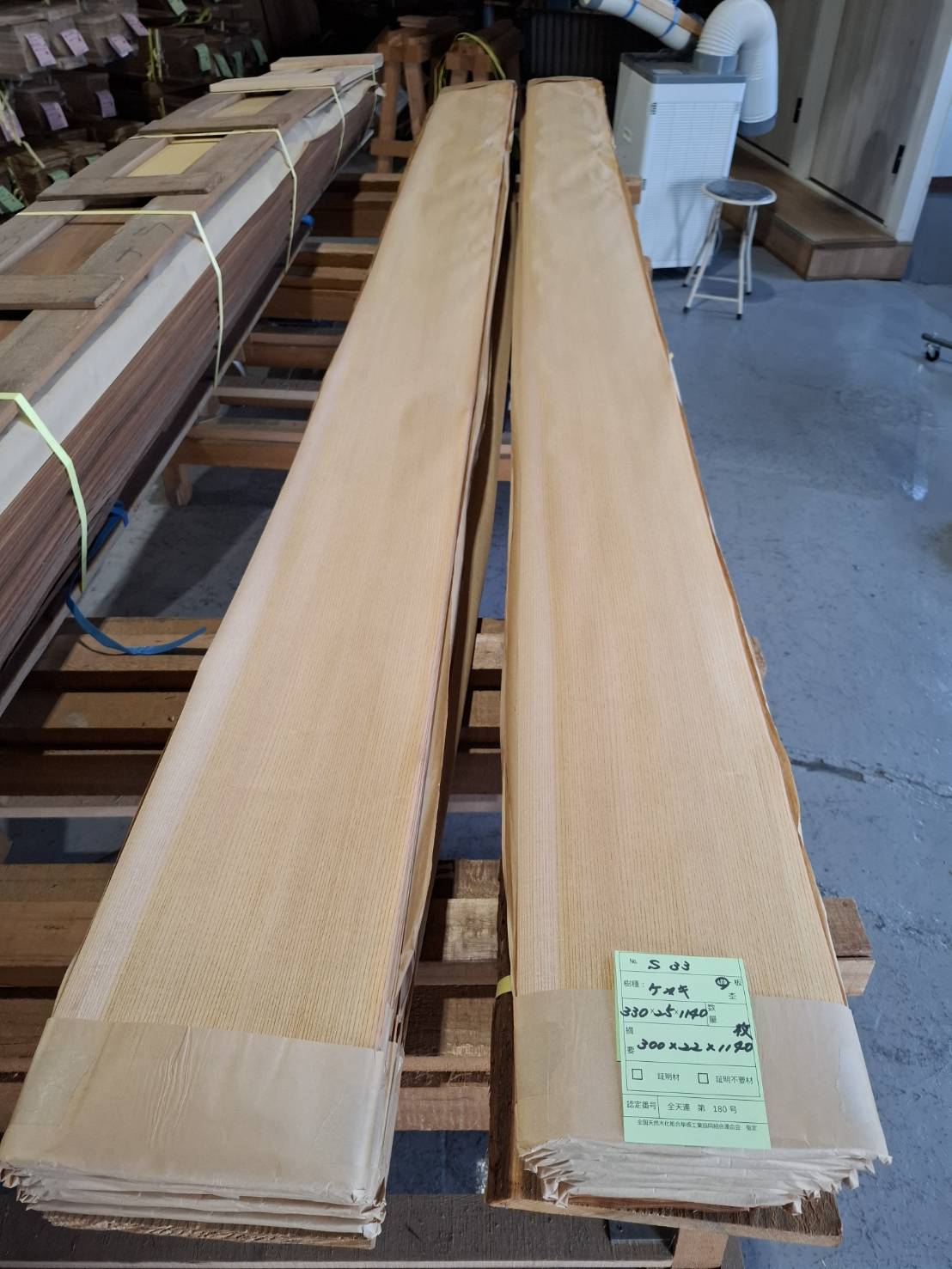 長さ(mm) 巾(mm) 枚数 平米(㎡) 3,300 250 1,140 - 長さ(mm) 巾(mm) 枚数 平米(㎡) 3,000 220 1,140 752.4 - 木 目